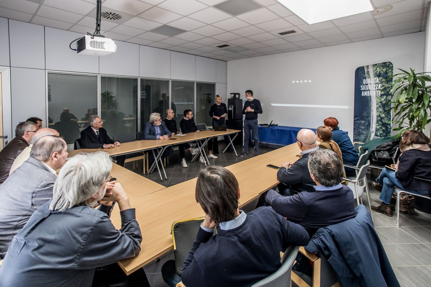 A fare gli onori di casa presente Devis Colombo, nuovo Direttore Commerciale di Volvo Trucks Italia. Da 20 anni in azienda, prima Direttore Service per poi passare alla direzione dei Volvo Truck Center, la rete di vendita e assistenza di proprietà.