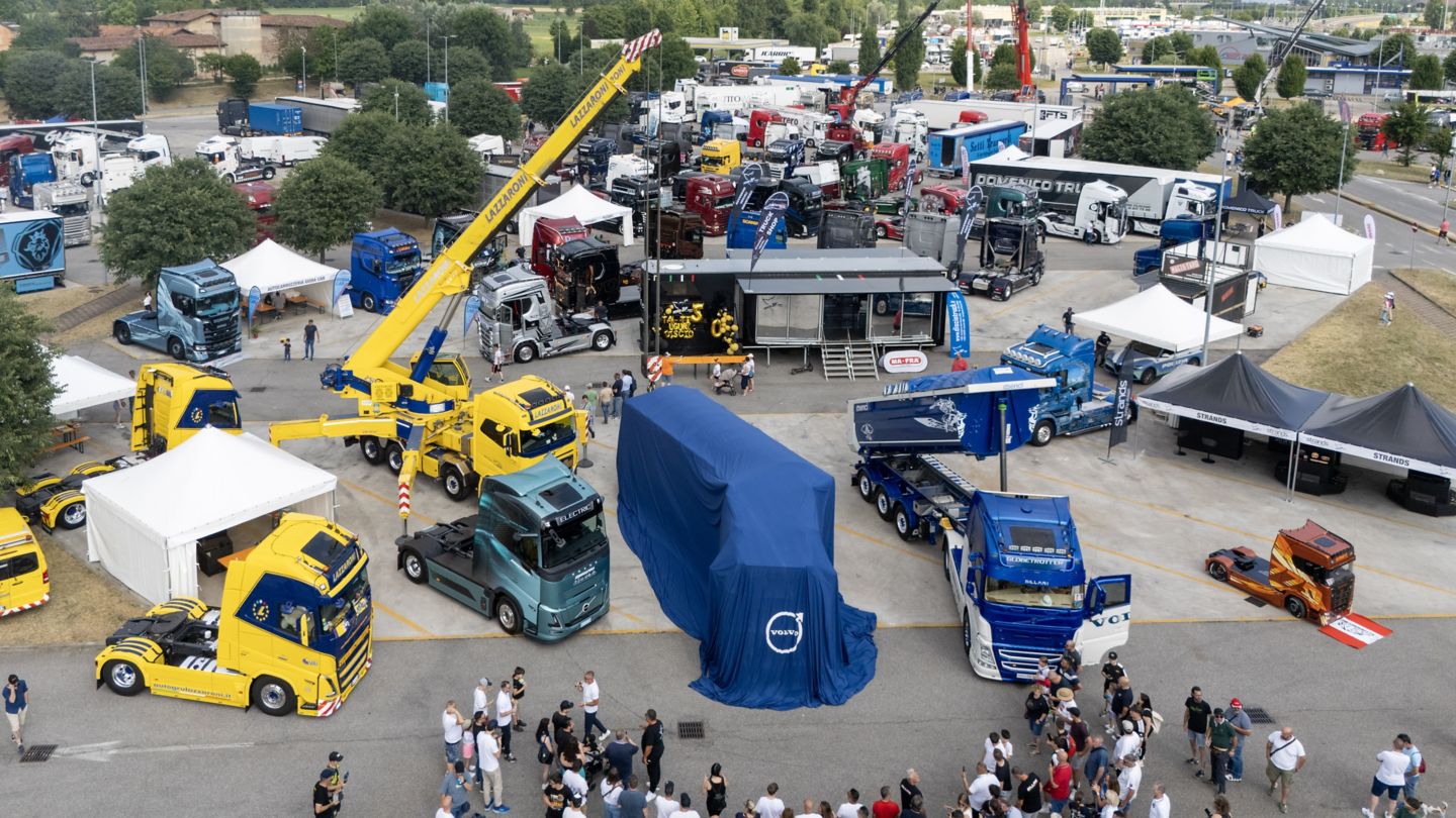 Alle 17:00 in punto, il grande telo che copriva il nuovo Volvo FH16 Aero 780 è stato sollevato da un’autogru di Lazzaroni davanti a una folla di amici e curiosi. Ha fatto da cornice all’emozionante cerimonia l’Universal Truck Show, l’evento organizzato da Discio 3F Truck che per il quarto anno consecutivo ha richiamato a Brescia tanti professionisti e appassionati dell’autotrasporto e del tuning truck: grafiche spettacolari, luci e impianti audio da concerto live, interni curatissimi. Non è solo decorazione: è una cultura fatta di cura maniacale, personalizzazione estrema e dettagli che raccontano chi sei.