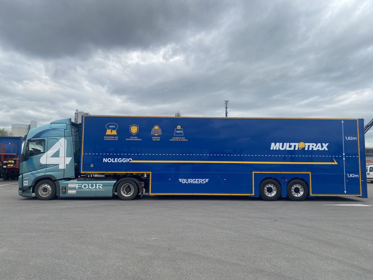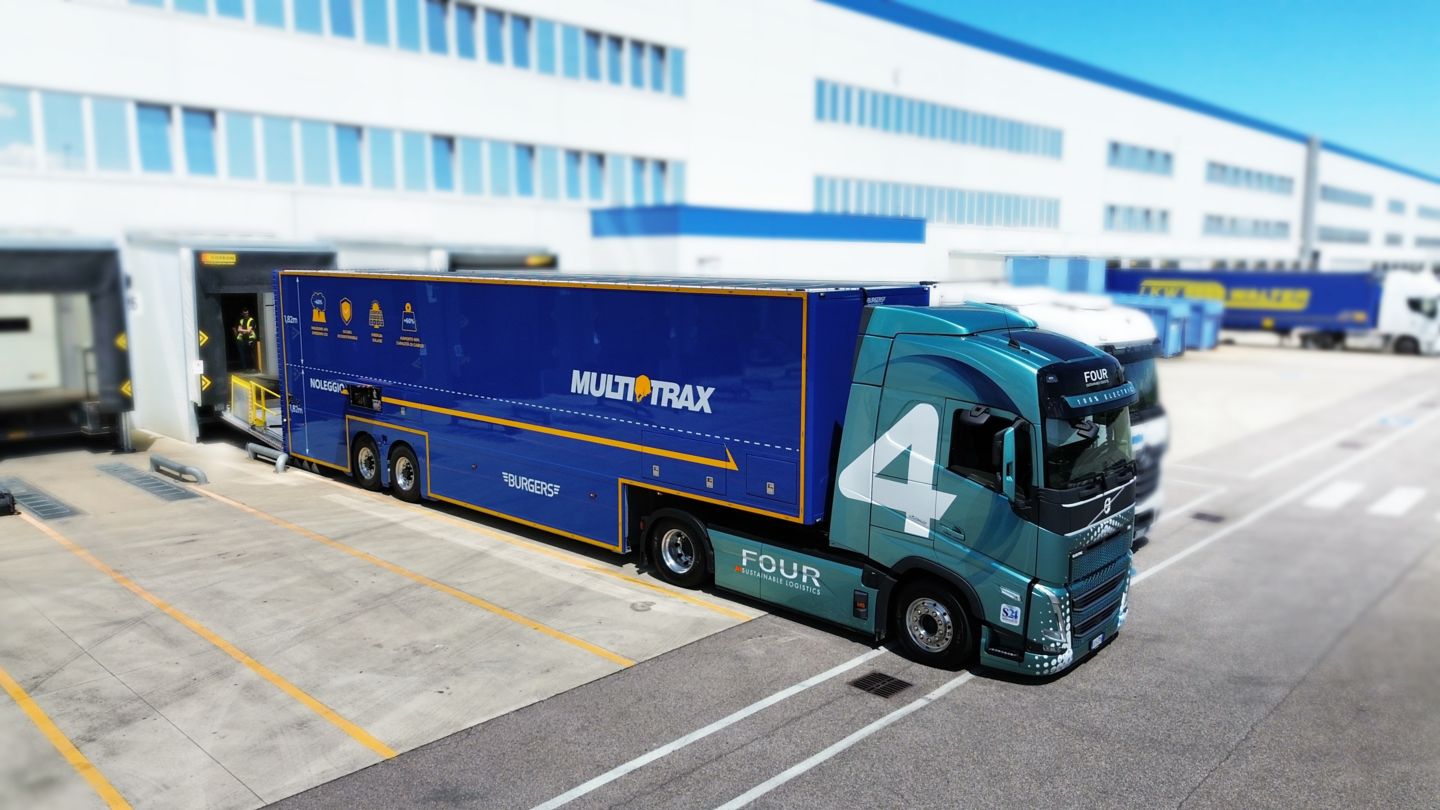 Mentre i temi della logistica green e della decarbonizzazione del trasporto pesante sono all’ordine del giorno, FOUR Sustainable Logistic (FOUR) ha sviluppato un progetto innovativo in collaborazione con Volvo Trucks Italia e Multitrax che ha come obiettivo la diffusione di un nuovo modello di trasporto elettrico in grado di porre l’Italia all’avanguardia in Europa nel settore per sostenibilità ambientale, economica e sociale. Il progetto dell’operatore logistico 4PL, specializzato nel trasporto sostenibile in aree urbane e suburbane, è incentrato sulla combinazione tra il trattore Volvo FH Electric e il semirimorchio a doppio piano Burgers, importato in esclusiva in Italia dall’azienda cremonese Multitrax.