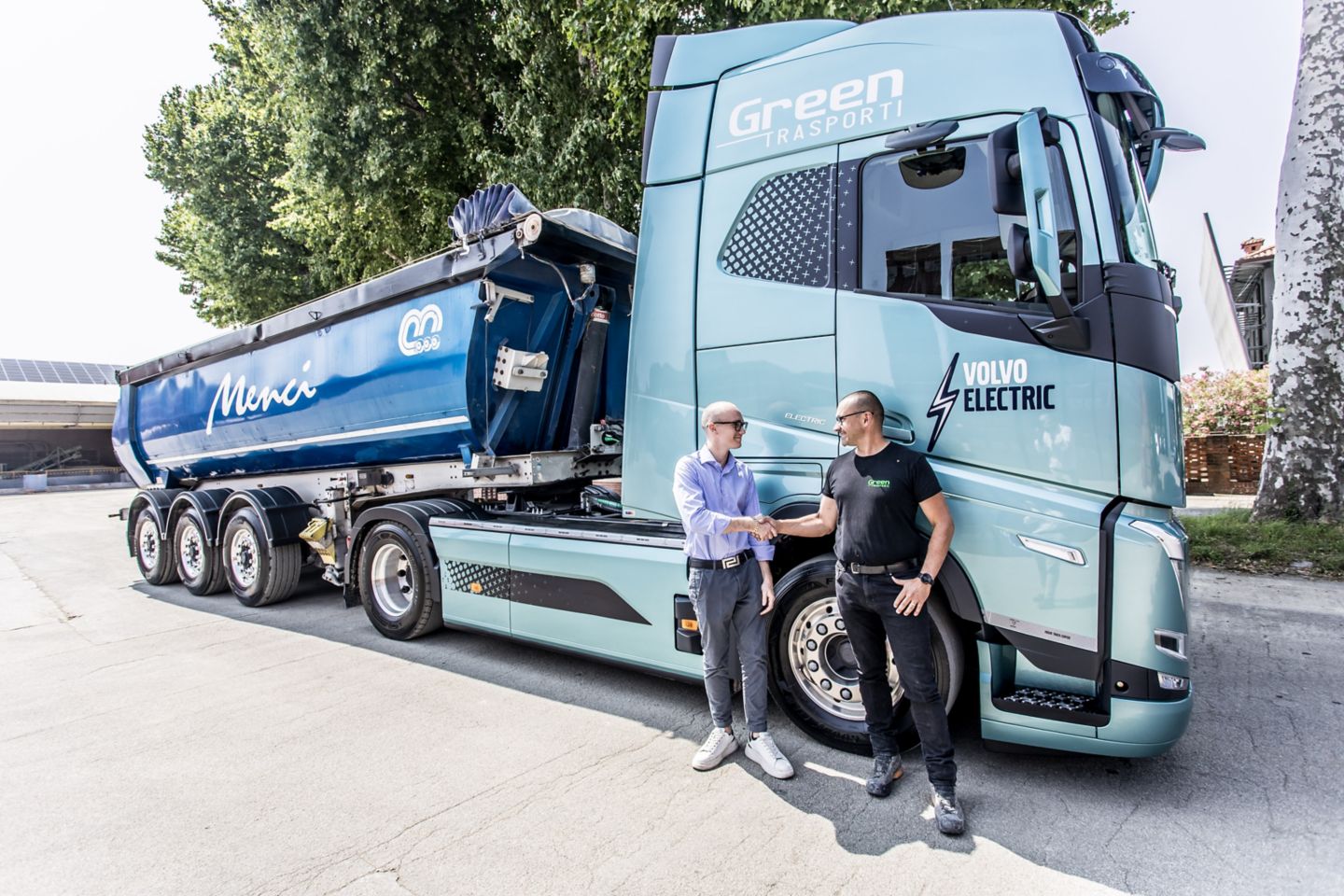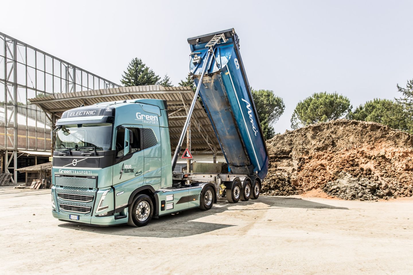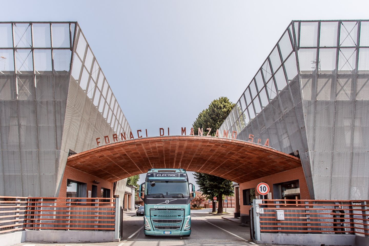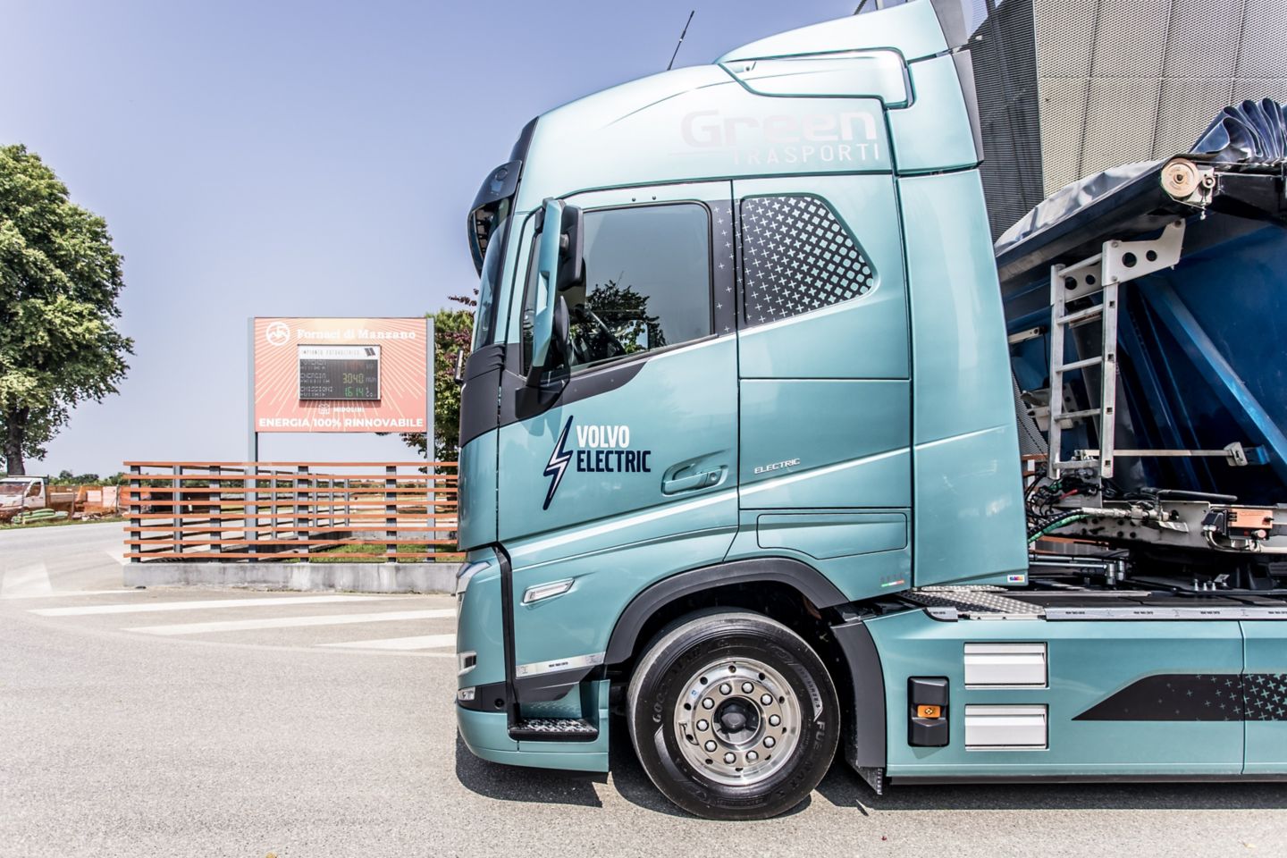 Fornaci di Manzano e Green Trasporti hanno raccolto la sfida della sostenibilità scegliendo di trasportare la materia prima dalla cava alla fornace con un trattore Volvo FH completamente elettrico, con cabina Globetrotter, frontale Classic, 540 kWh di potenza nominale fornita dai sei pacchi batterie e la possibilità di ricarica in AC a 43kW e in DC fino a 250kW. Il veicolo è dotato di impianto idraulico per il ribaltamento del semirimorchio gestito dalla presa di forza sul cambio. Abbinato al veicolo il pacchetto dei servizi di connettività che gestiscono la manutenzione predittiva e il monitoraggio dell'utilizzo e della ricarica. Coperto da un contratto gold di cinque anni, garantisce affidabilità, comfort di guida e costi certi grazie alla formula di noleggio a lungo termine con RBS, la società di noleggio del gruppo Volvo. Ogni giorno il veicolo percorre circa 30 km a pieno carico all’andata e vuoto al ritorno: l’autonomia è più che sufficiente per le tratte e la leggera pendenza del percorso consente anche il recupero di energia in discesa.